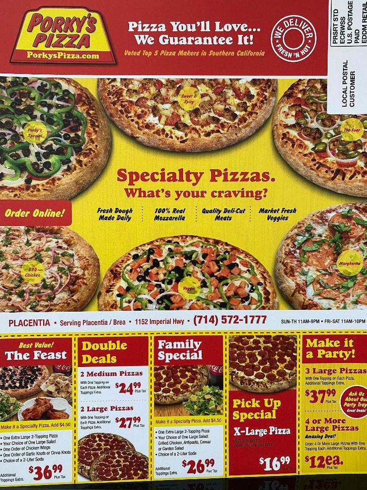 Welcome to Porky's Pizza Placentia, where exceptional flavor meets unbeatable service! Nestled at 1152 E Imperial Hwy, Placentia, CA 92870, this pizzeria beckons pizza lovers with its inviting array of dishes.